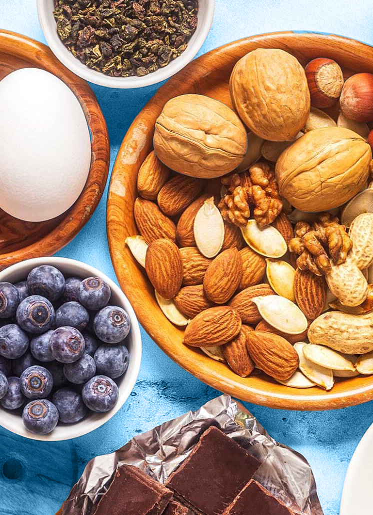 Magnesium komt voor in verschillende voedingsmiddelen. Het zit in volkorenbrood en andere volkoren graanproducten, groente, noten, melk en melkproducten, en vlees. Ook water kan bijdragen aan de inname van magnesium. Onze favoriete voedingsmiddelen met magnesium zijn cashewnoten, spinazie en volkorenpasta. Die bevatten naast magnesium ook vezels!