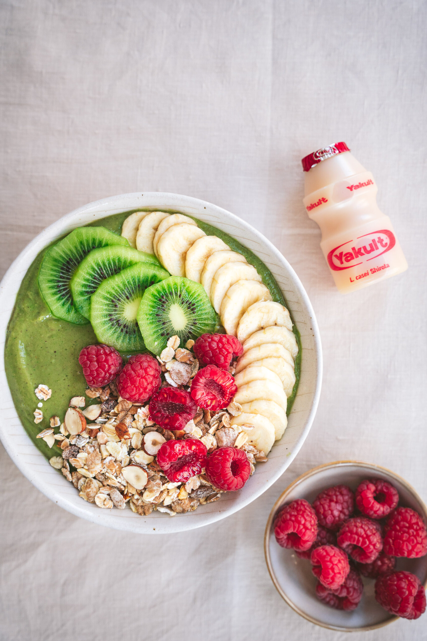 Smoothie met komkommer, tomaatjes, basilicum, Yakult en meer! Op zoek naar een smoothie met een bite? Dan is de Spicy cucumber-tomato starter smoothie echt iets voor jou! Deze vurige variant stimuleert meteen je smaakpupillen en geeft je spijsvertering een boost. Om je dag lekker pittig mee te beginnen.